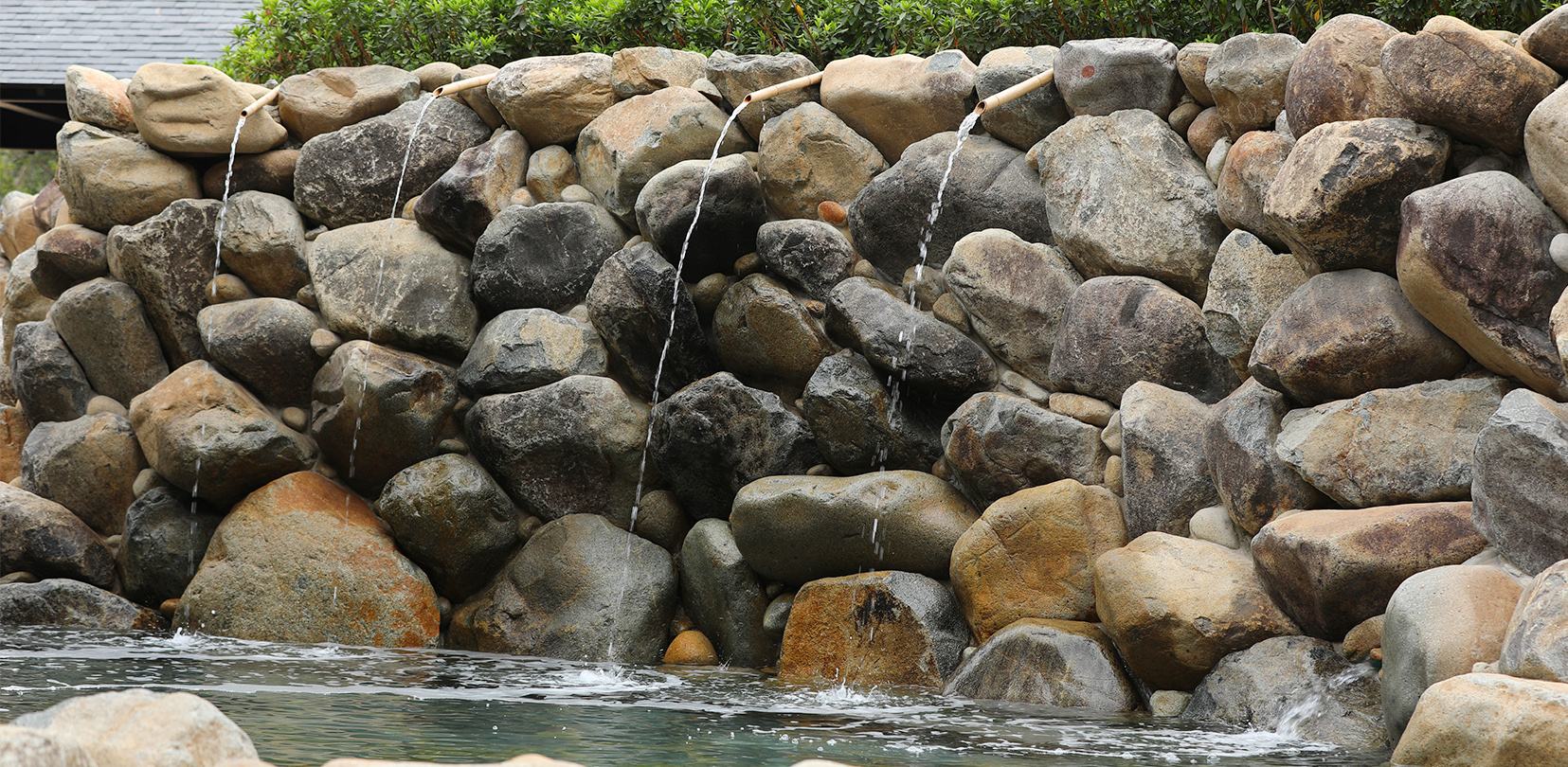 Thiết kế bể tắm đá được lấy cảm hứng từ thiên nhiên hoang dã mang lại cảm giác thư thái như trở về với tự nhiên yên bình và trong trẻo. Dòng nước khoáng nóng Lạc Sanh mang lại sự thư giãn, giảm căng thẳng và mệt mỏi.